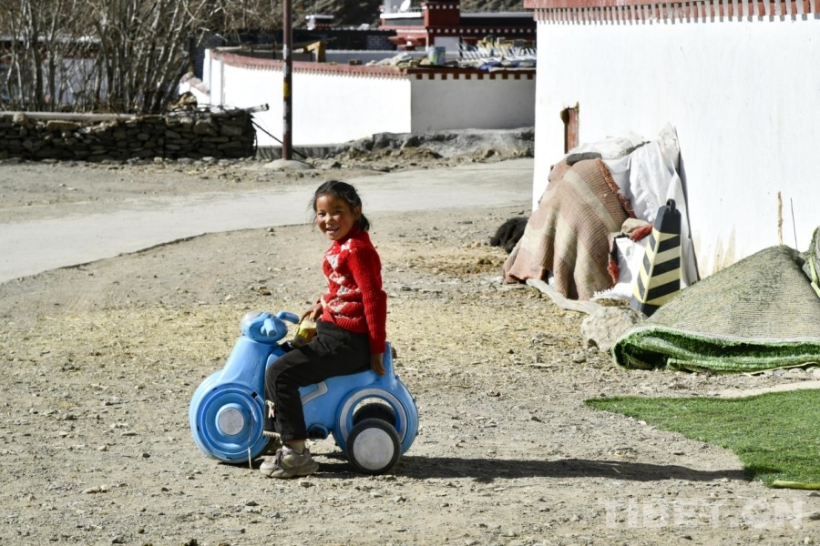 圖為定日縣長(zhǎng)所鄉(xiāng)古榮村內(nèi)在自家新居前快樂(lè)玩耍的小女孩。攝影:趙振宇