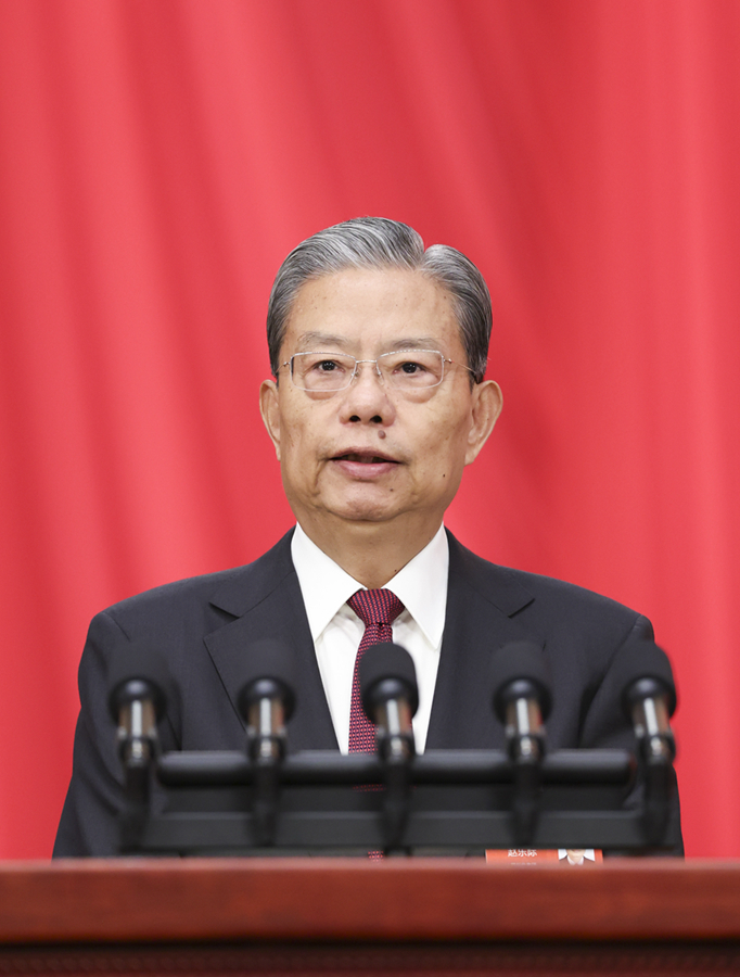 3月8日,十四屆全國(guó)人大三次會(huì)議在北京人民大會(huì)堂舉行第二次全體會(huì)議。受全國(guó)人大常委會(huì)委托,趙樂際委員長(zhǎng)向大會(huì)報(bào)告全國(guó)人大常委會(huì)工作。新華社記者 丁海濤 攝