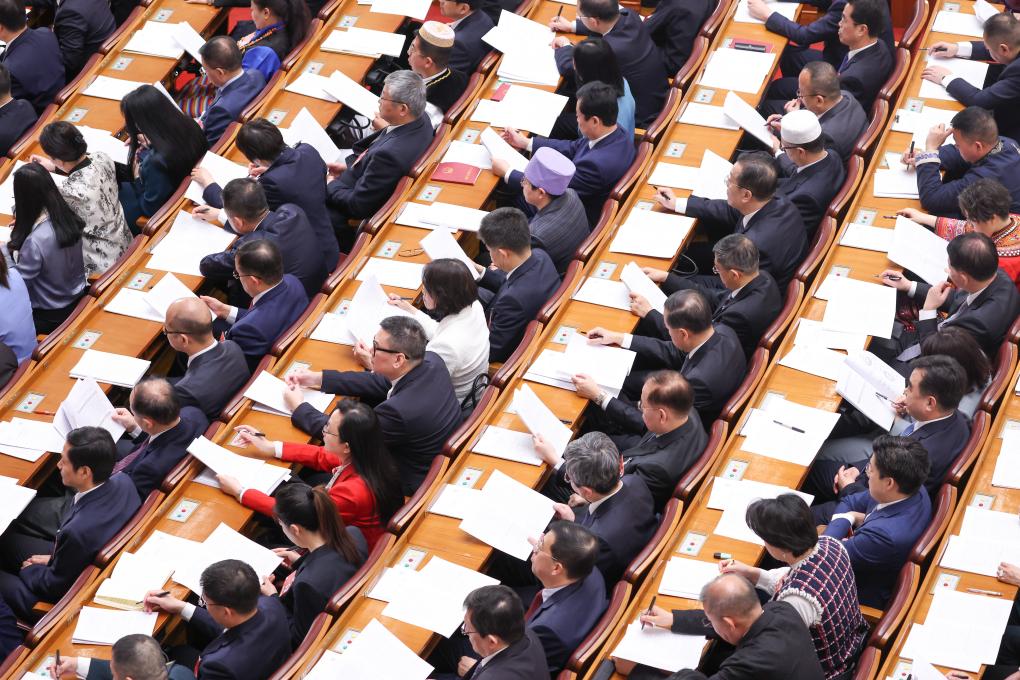 3月8日,十四屆全國(guó)人大三次會(huì)議在北京人民大會(huì)堂舉行第二次全體會(huì)議。新華社記者 龐興雷 攝