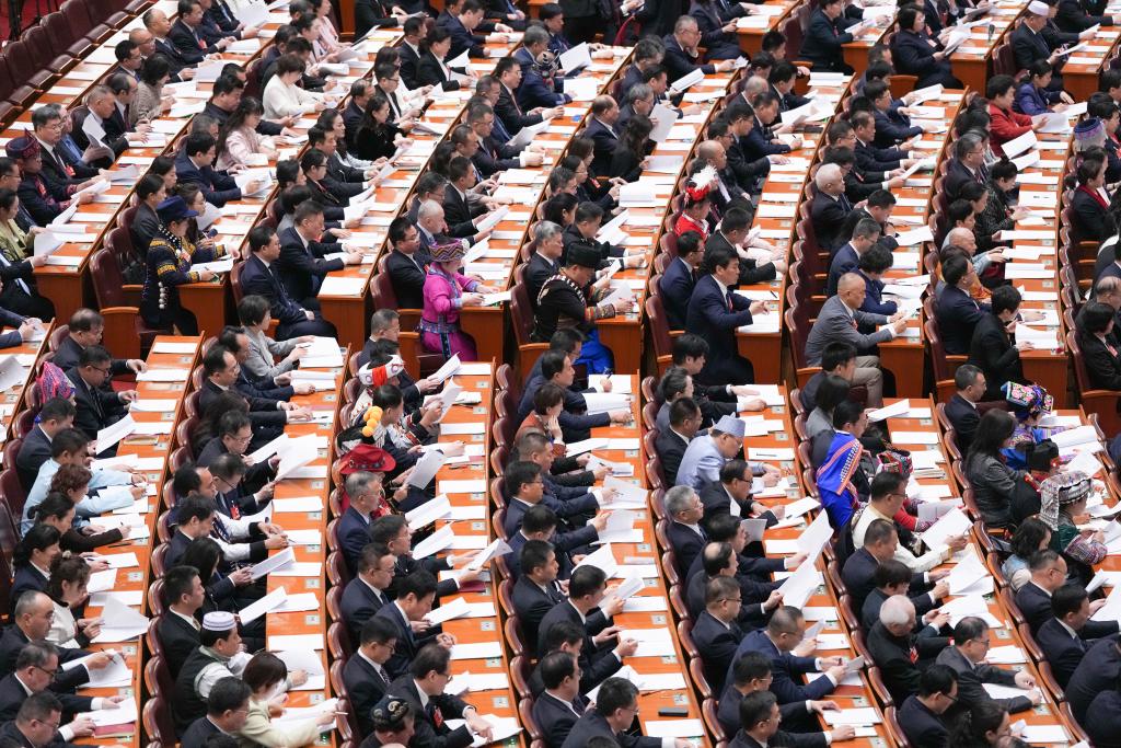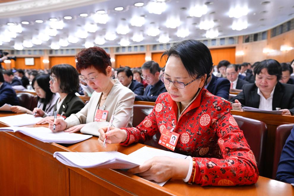 3月8日,十四屆全國(guó)人大三次會(huì)議在北京人民大會(huì)堂舉行第二次全體會(huì)議。新華社記者 翟健嵐 攝