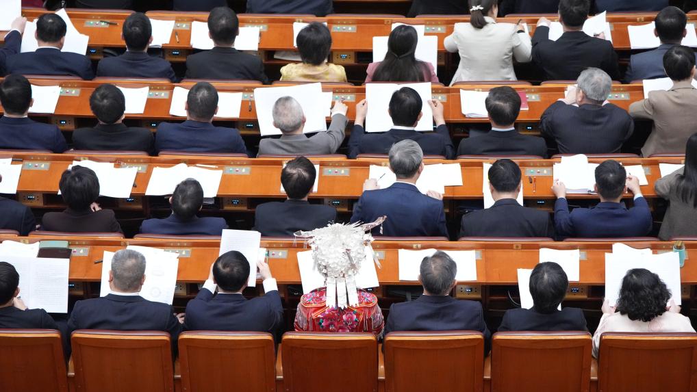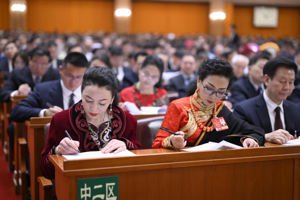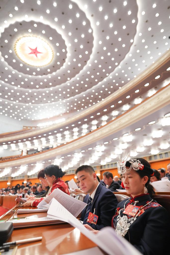 3月8日,十四屆全國(guó)人大三次會(huì)議在北京人民大會(huì)堂舉行第二次全體會(huì)議。新華社記者 申宏 攝