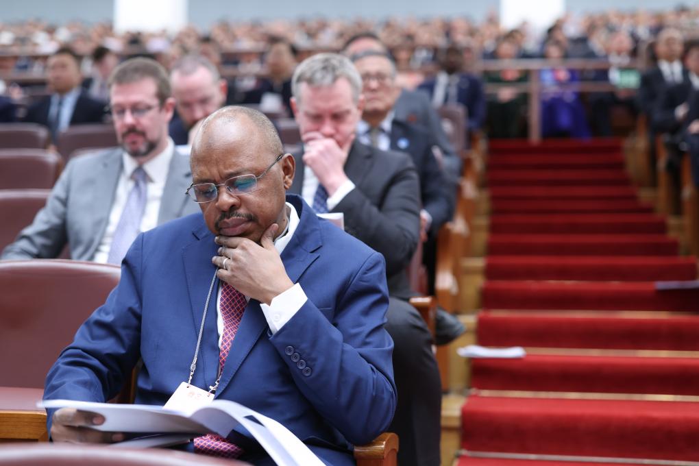 3月8日,十四屆全國(guó)人大三次會(huì)議在北京人民大會(huì)堂舉行第二次全體會(huì)議。這是外國(guó)駐華使節(jié)旁聽大會(huì)。新華社記者 劉彬 攝
