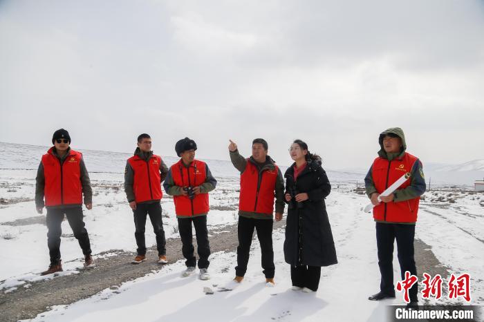 圖為2月22日郭金萍與祁連山國(guó)家公園硫磺溝管護(hù)站管護(hù)員一起巡護(hù)。中新社記者 馬銘言 攝