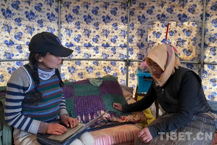 圖為白瑪措(左)在牧民家中調(diào)研 受訪者供圖
