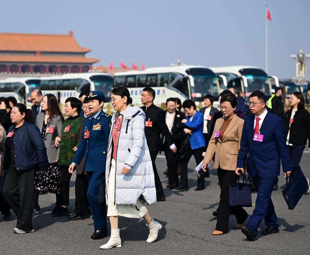 3月8日,全國政協(xié)十四屆四次會議在北京人民大會堂舉行第三次全體會議。這是全國政協(xié)委員走向會場。新華社記者 金良快 攝