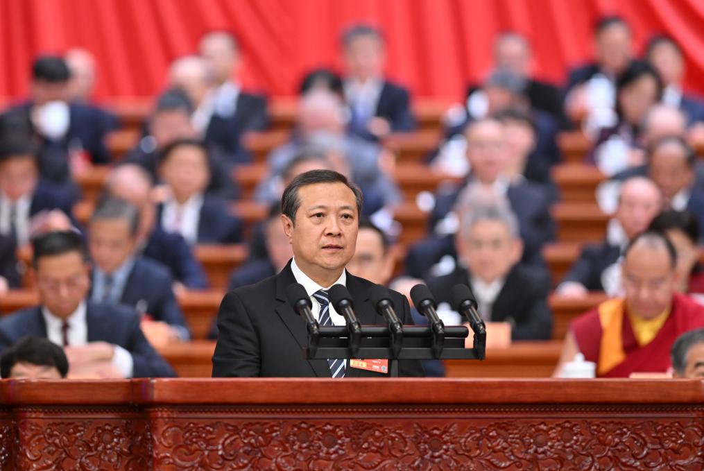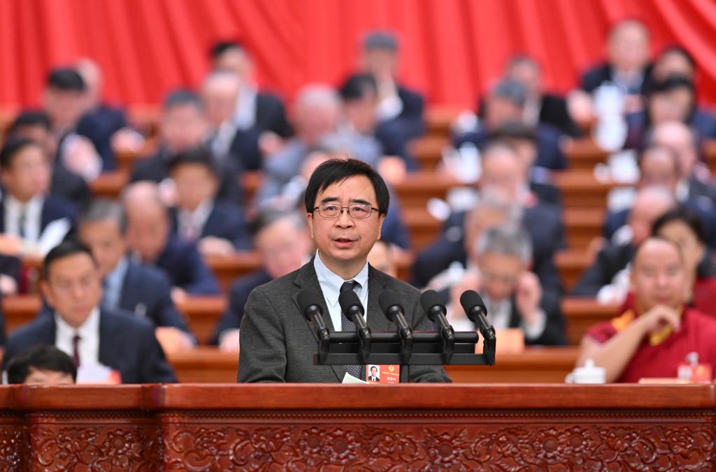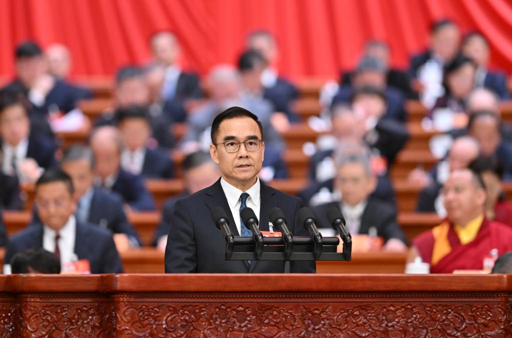 3月8日,全國政協(xié)十四屆四次會議在北京人民大會堂舉行第三次全體會議。這是施榮懷委員作題為《深入推動香港更好融入和服務國家發(fā)展大局》的發(fā)言。新華社記者 岳月偉 攝