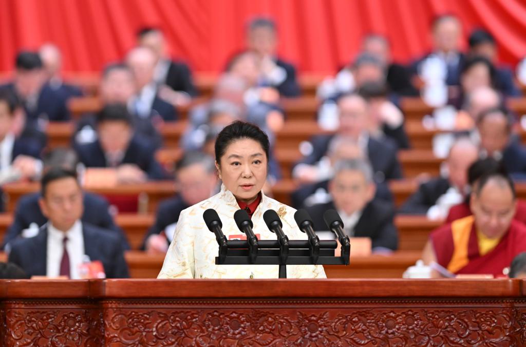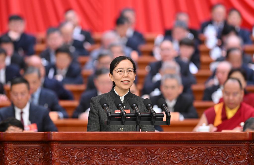 3月8日,全國政協(xié)十四屆四次會議在北京人民大會堂舉行第三次全體會議。這是陳星鶯委員代表民革中央作題為《“臺獨”必是絕路 統(tǒng)一方為正道》的發(fā)言。新華社記者 岳月偉 攝