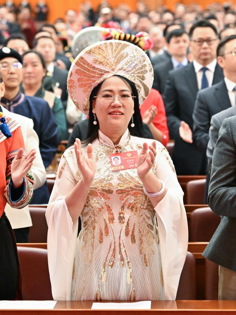 3月4日,蘇海珍委員在全國政協(xié)十四屆四次會(huì)議開幕會(huì)上。新華社記者 陳益宸 攝