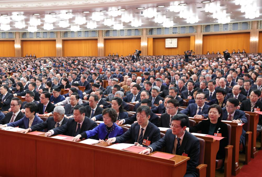 3月11日,全國政協(xié)十四屆四次會議在北京人民大會堂舉行閉幕會。新華社記者 申宏 攝