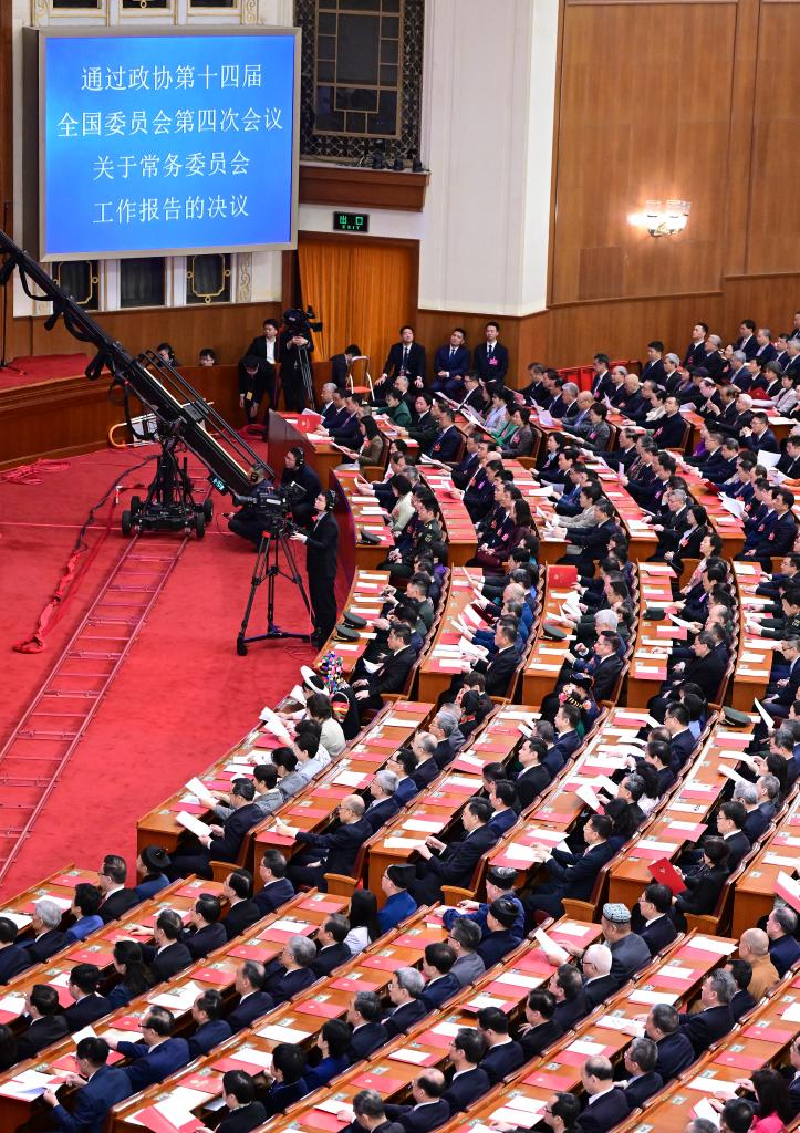 3月11日,全國政協(xié)十四屆四次會議在北京人民大會堂舉行閉幕會。新華社記者 王曦 攝