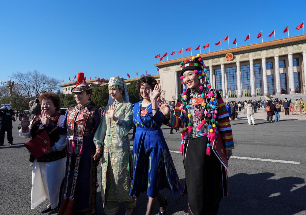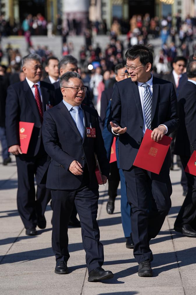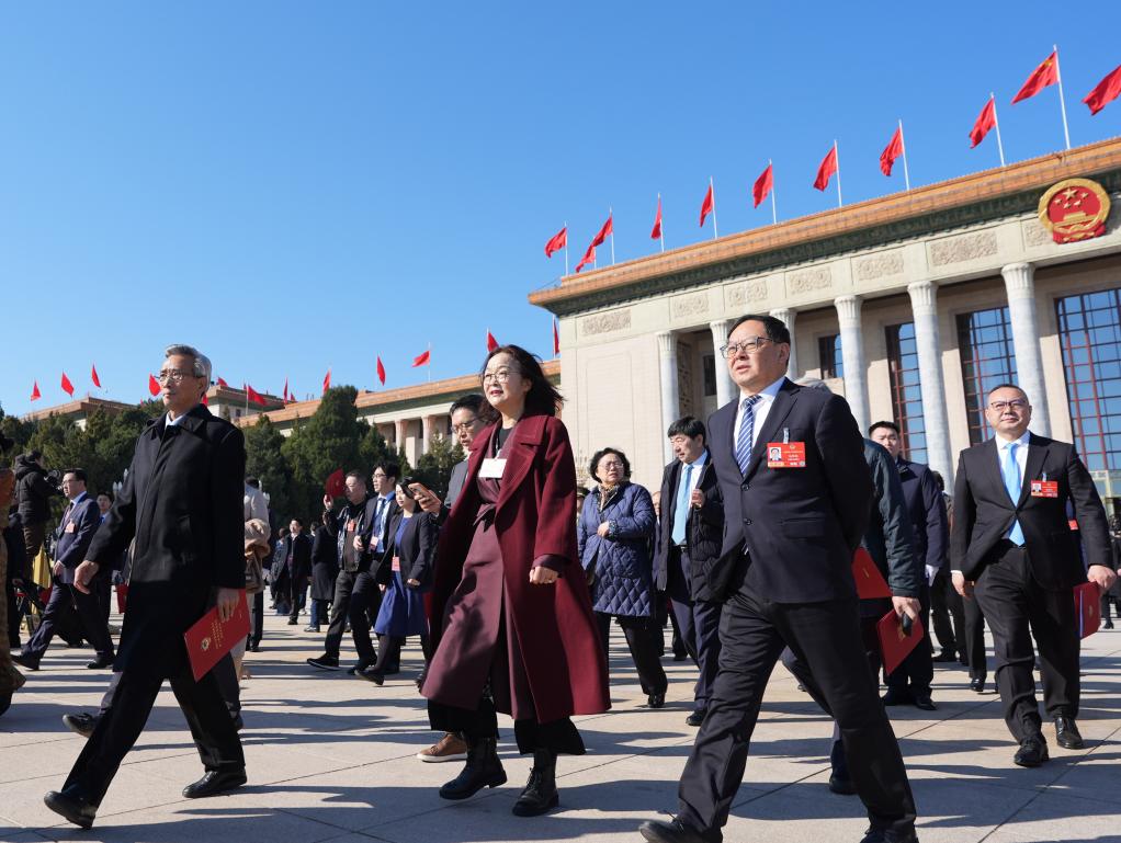 3月11日,全國政協(xié)十四屆四次會議在北京人民大會堂舉行閉幕會。這是閉幕會后,委員們走出人民大會堂。新華社記者 金良快 攝